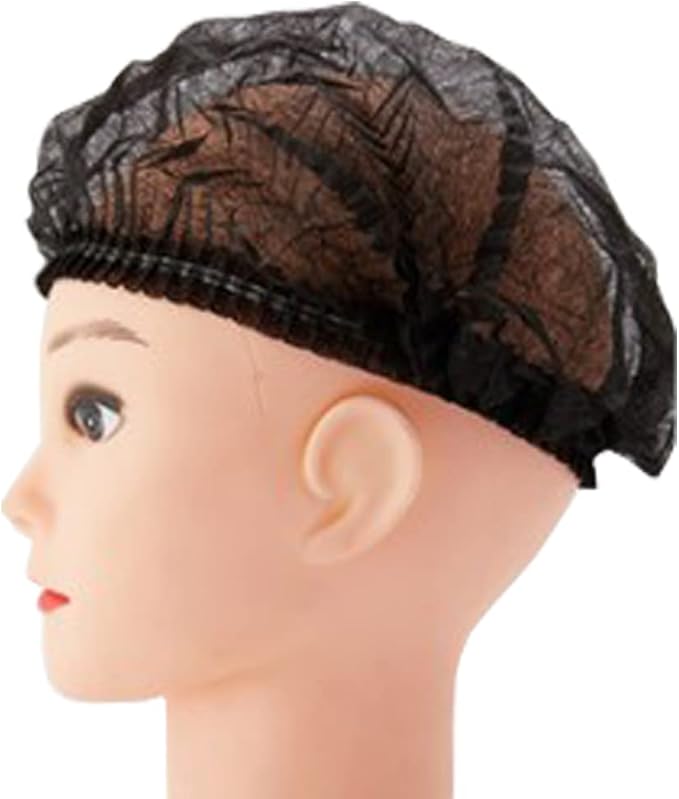 [限定商品] ヘアキャップ使い捨て 不織布 ヘアキャップ 100枚入 使い捨て帽子 不織布 使い捨てキャップ 衛生キャップ 衛生管理 脱毛対策 工場見学 業務用 作業用 美容用 フリーサイズ 男女兼用 (ブラック)