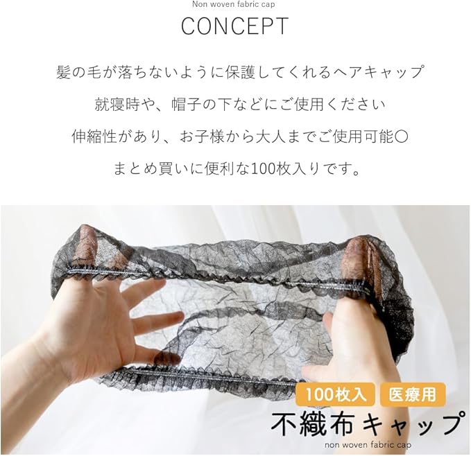 [ブライトララ] 使い捨て ヘアキャップ 不織布 100枚 20枚 脱毛用 使い切り 工場 不織布帽子 キャップ 抜け毛 | etshop