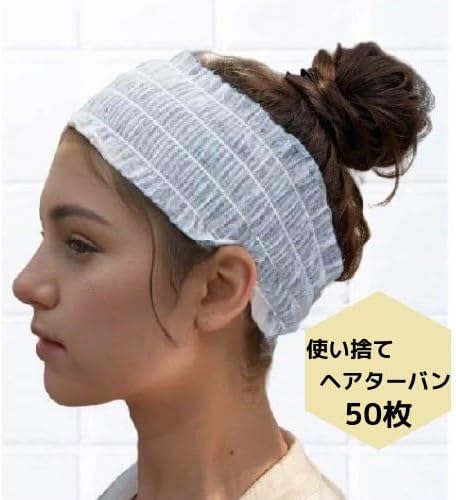 使い捨てヘアターバン ホワイト 50枚入り 不織布 個包装 美容院 サウナ スパ ホテル入浴用 (50, ホワイト)