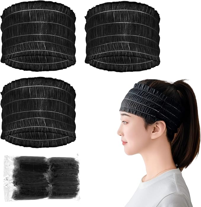 使い捨てヘアバンド 100枚セット|個包装で衛生的!伸縮性抜群・軽量不織布製で快適フィット 洗顔・メイク・美容施術・髪染め・入浴にも大活躍