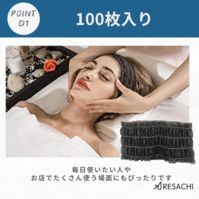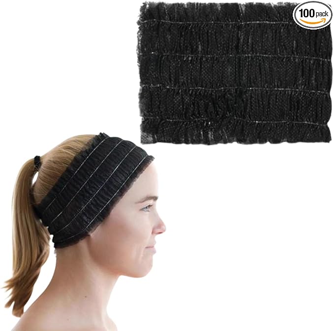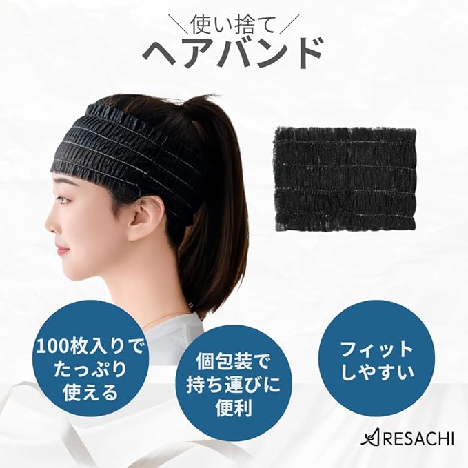 ヘアバンド 使い捨て ヘアキャップ 洗顔 化粧 エステ 個包装 不織布 100枚 ブラック