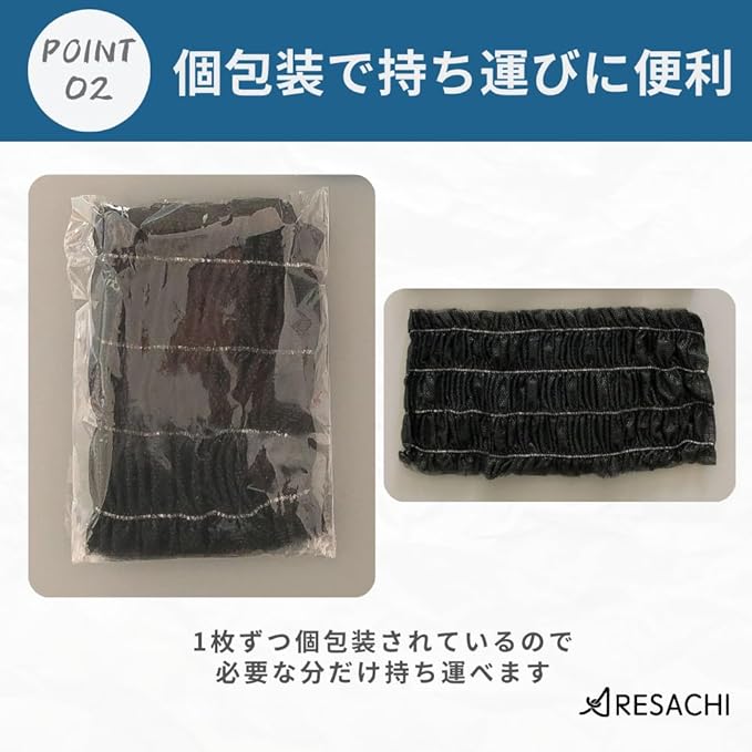 【個包装で持ち運びに便利】1枚ずつ個包装されているので、かばんの中でもかさばらず、必要な分だけ持っていけます。サロンやホテルでのアメニティとしても使いやすく、誰かに配るときにも清潔感があります。