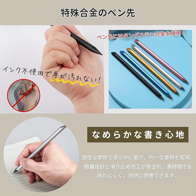 【長期間使用できる】耐久性に優れたメタルペンシルは、一般的な鉛筆より壊れにくく、長期間安定して使用可能。コストパフォーマンスに優れています。