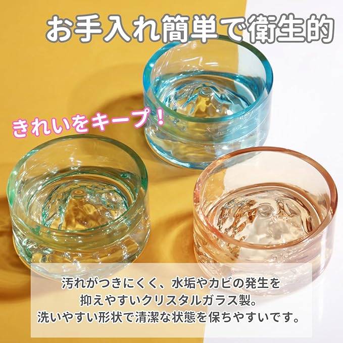 ハムスター 水飲み 器 置き型 水飲み皿 クリスタルガラス 小型 ペット ウォーターボウル 富士山型 (アンバー)