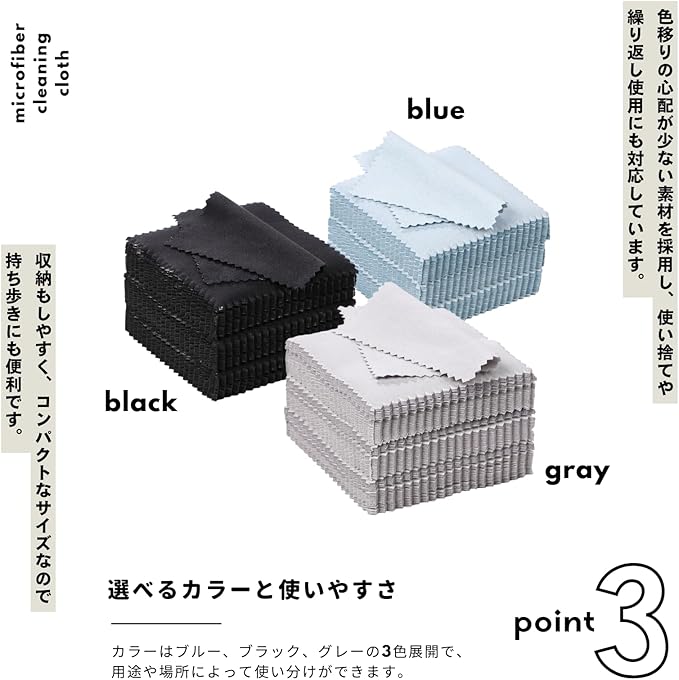 【選べるカラーと使いやすさ】 カラーはブルー、ブラック、グレーの3色展開で、用途や場所によって使い分けてもOKです。色移りの心配が少ない素材を採用し、使い捨てや繰り返し使用にも対応しています。収納もしやすく、コンパクトなサイズなので持ち歩きにも便利です。