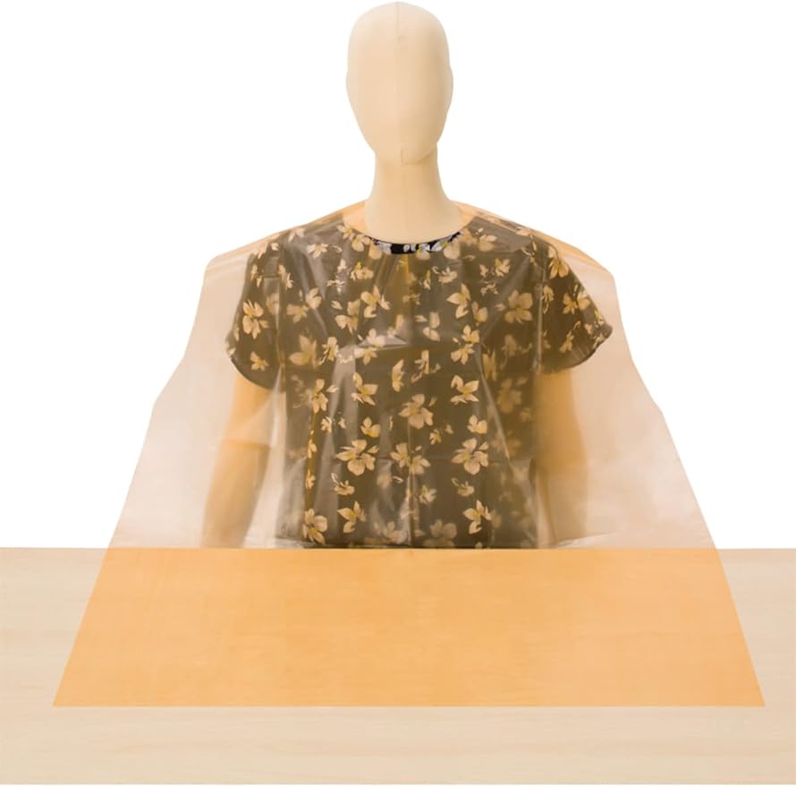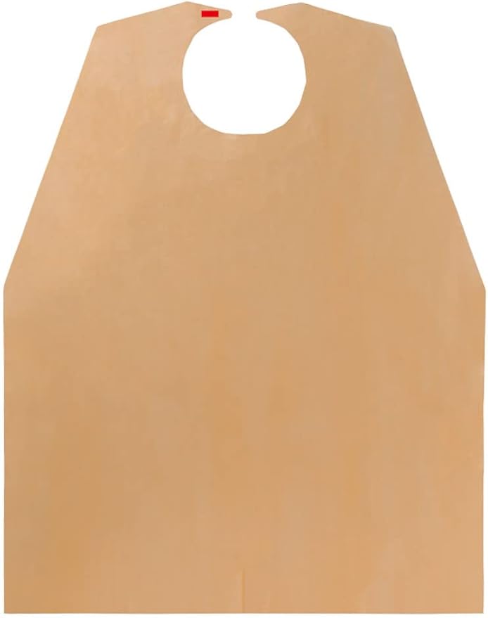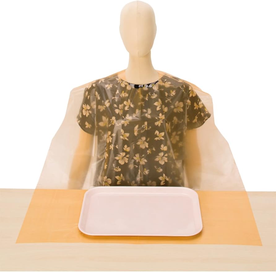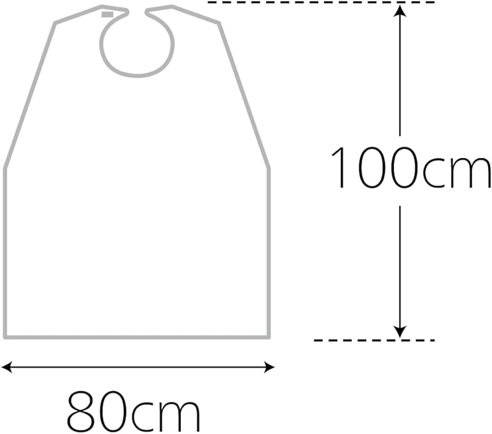 ディスポタイプの食事用エプロン、洗濯不要です。襟元の粘着テープで簡単に首周りの調節ができ、防水性に優れています。