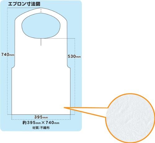 ソフトな手触りの、不織布タイプ使い捨てエプロンです。 衛生的で便利な使い捨てタイプのエプロンです。 飲食店、食事介護、お子様の食事、お化粧(メイク)の時、美容室での使用など場面での使用に最適です。 1枚ずつ折りたたんであるので必要枚数のみの携帯にも便利です。 できる限りお安く提供するため簡易パッケージにしておりますのでご了承ください。