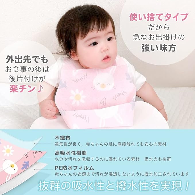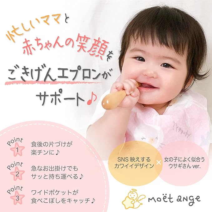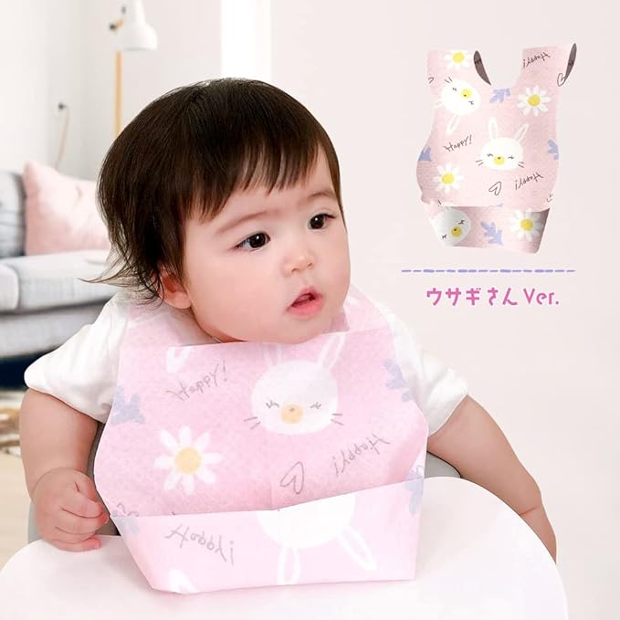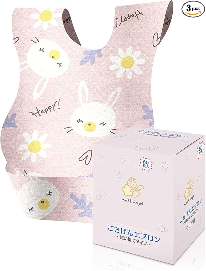 [moet-ange] 使い捨てエプロン ベビー 60枚入 [SNS映えするカワイイデザイン] 赤ちゃん 子供用 スタイ よだれかけ 男の子用 出産祝い (ウサギ)