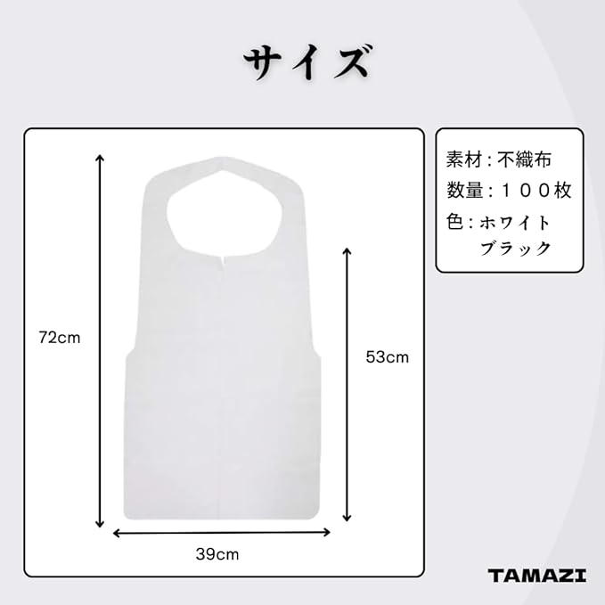 TAMAZI 使い捨てソフトエプロン 白 【100枚入】 不織布タイプ 介護 調理 衛生