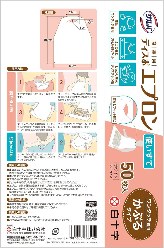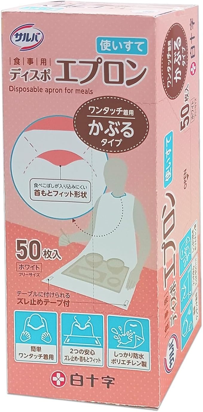 サルバ 白十字 食事用ディスポエプロン 50枚入 介護用 食事用 使い捨て