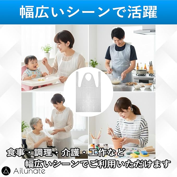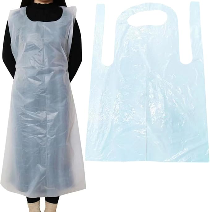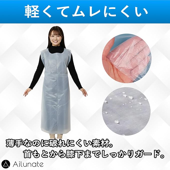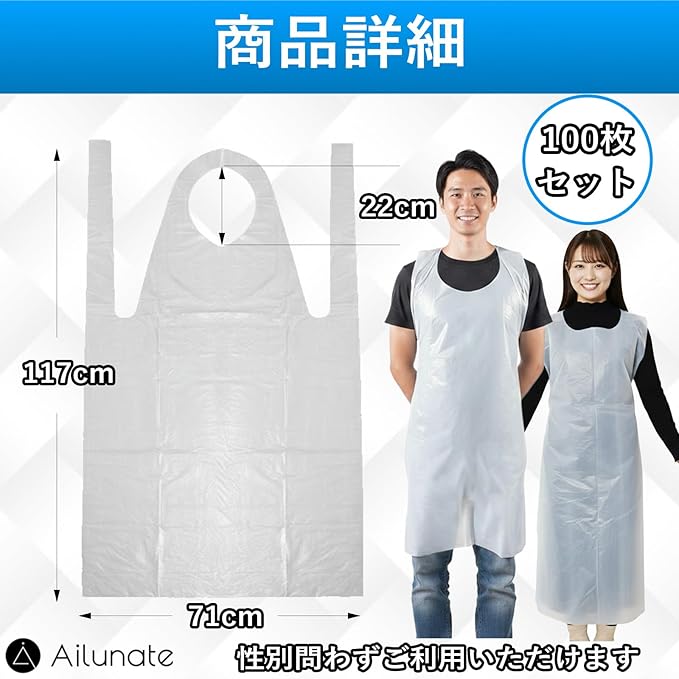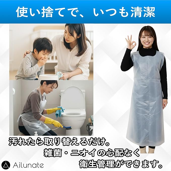 [Ailunate] 使い捨てエプロン 防水 ビニール 介護 食事 大人 掃除 看護 ホワイト 透明 100枚入り | etshop