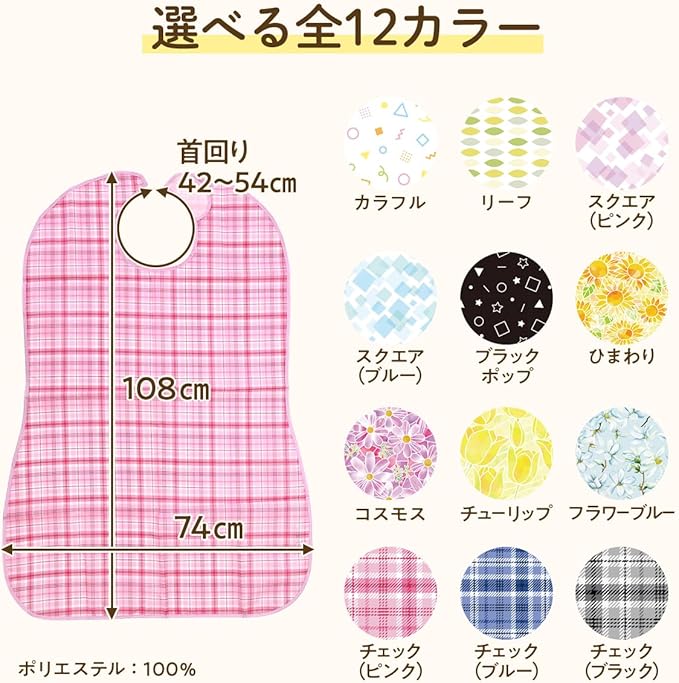 [Libexy] 介護用エプロン お食事用エプロン 服も床も汚さない テーブルに掛けられる ワイドサイズ 高齢者 大人 シニア 介助 洗える 洗濯可 防水 かわいい 食べこぼし 大きい | etshop