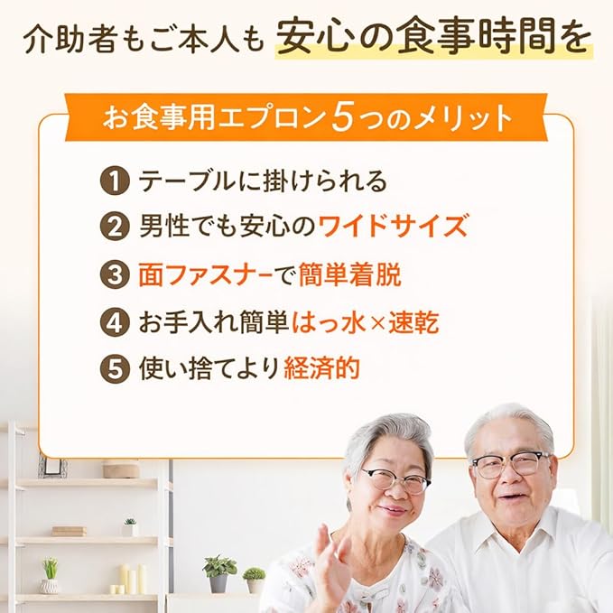 [Libexy] 介護用エプロン お食事用エプロン 服も床も汚さない テーブルに掛けられる ワイドサイズ 高齢者 大人 シニア 介助 洗える 洗濯可 防水 かわいい 食べこぼし 大きい