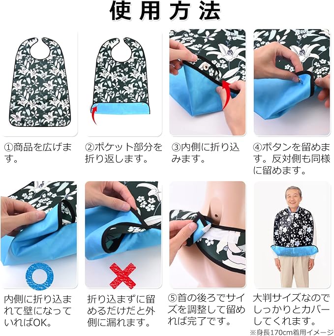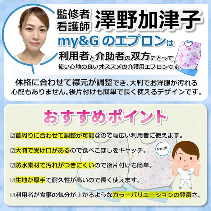 [my&G] 介護用エプロン 25種類 【看護師監修】 食事 介護用品 大人用 防水