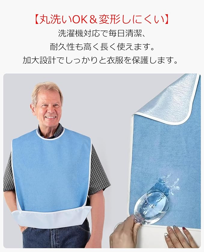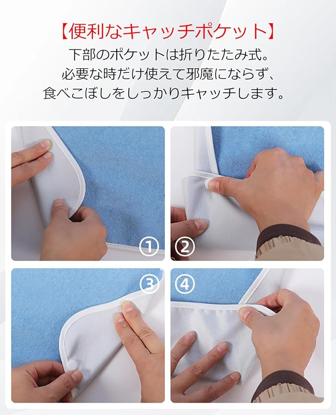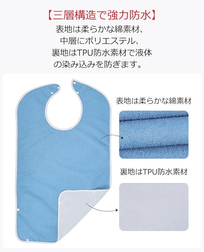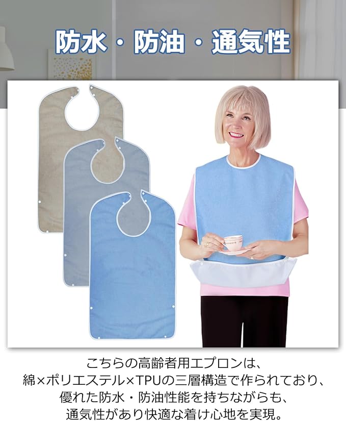 [Tosiyoi] 介護エプロン 3枚セット 高齢者用 食事用エプロン 立体ポケット 大人用 三層構造 大きめサイズ 食べこぼしキャッチポケット付き 介護用ビブ 男女兼用