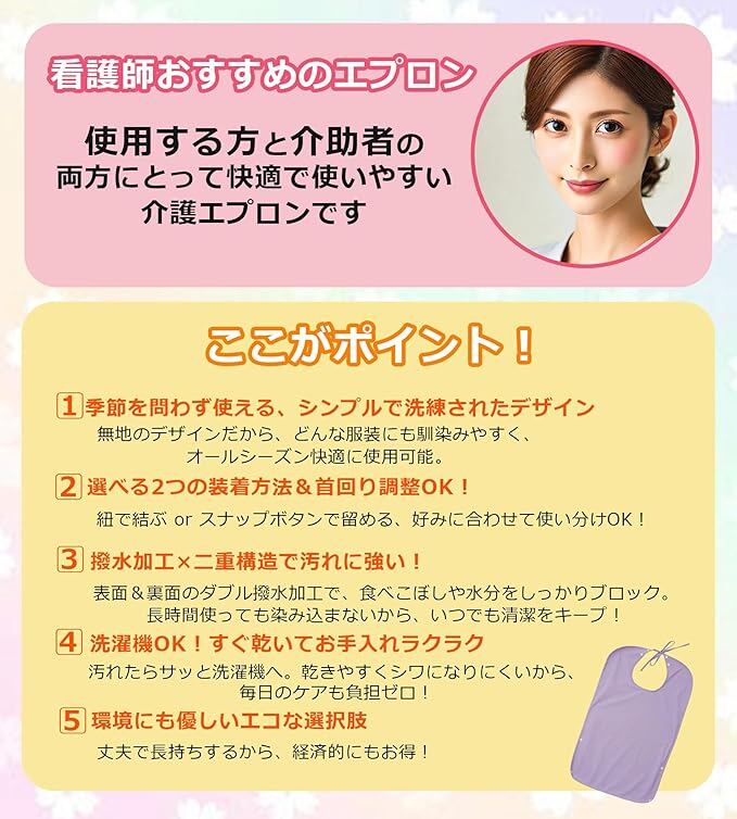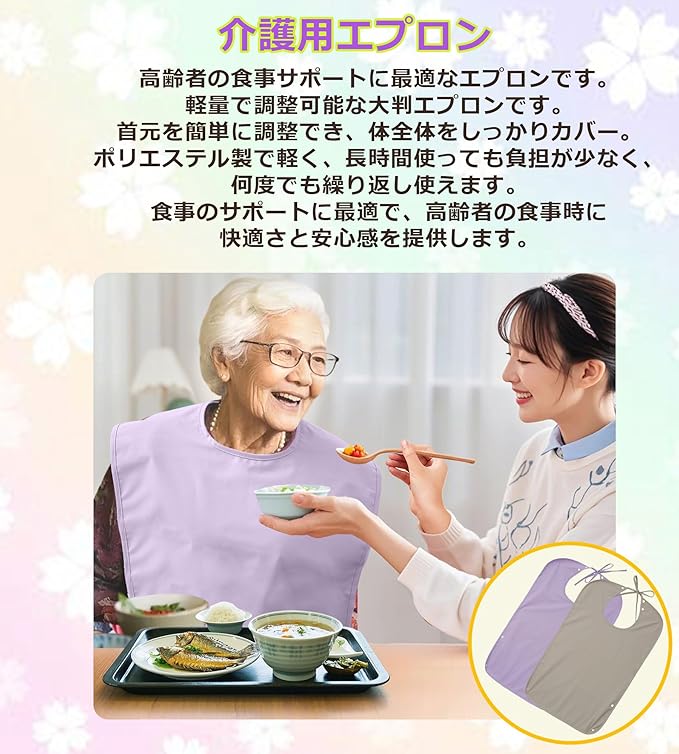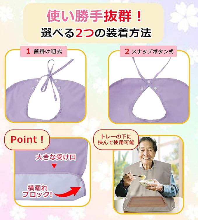 [xuanli] 介護用エプロン 多用途 よだれかけ 2WAY着脱 食事用エプロン 大人用 着脱感改良 高齢者 撥水加工 洗濯可能 繰り返し使用 ポケット付き