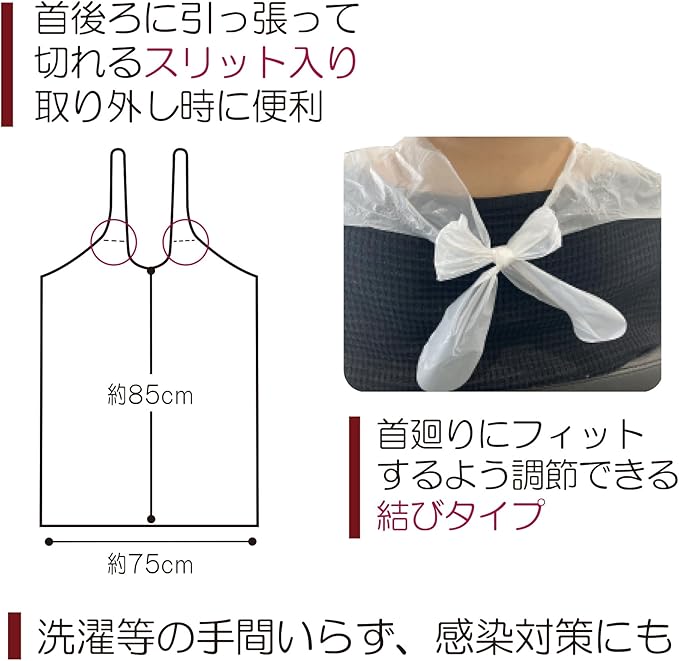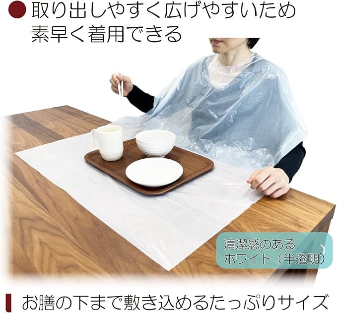 衛生的な使い捨てタイプ。ビニール製で食べこぼしをしっかりブロック