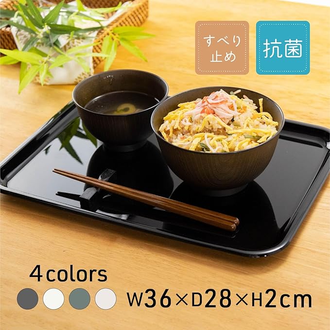 アサヒ興洋 トレー 抗菌 長方形 ブラック 36cm すべり止め加工 おしゃれ お盆 1枚入