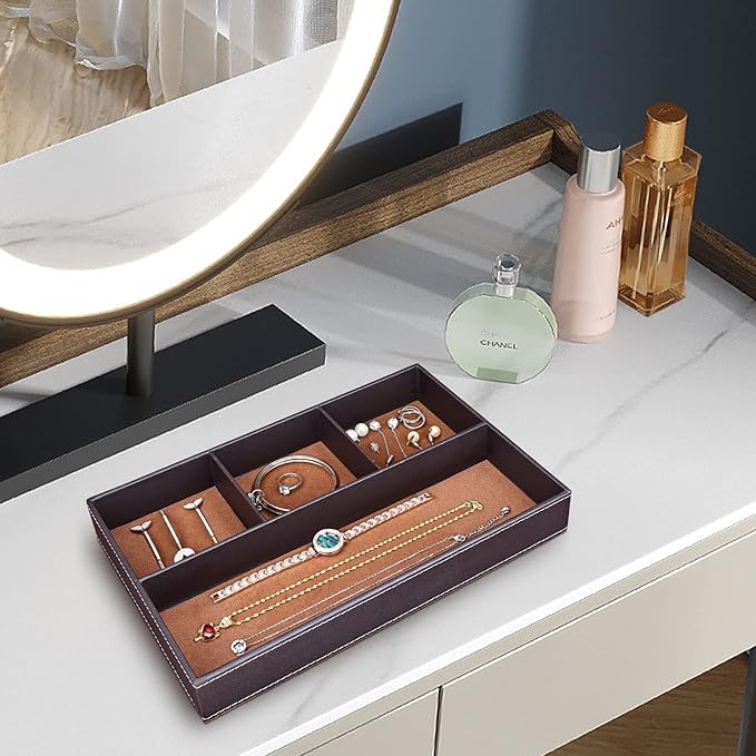 Richblue 収納トレイ 小物入れ 卓上トレイ 引出しトレイ PUレザー製 デスクトレイ 引き出し仕切り 整理トレイ 多用途 デスクオーガナイザー アクセサリー インテリア 小物置き 鍵置き 玄関収納 腕時計 指輪 収納ケース おしゃれ ブラウン*1