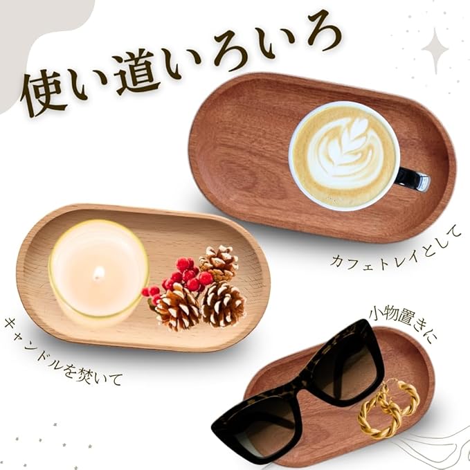 ✅【丁寧な仕上げ】角の面取り加工で手当たりが優しく、滑らかな仕上がり。毎日使っても安心な、品質にこだわった木製トレーです。