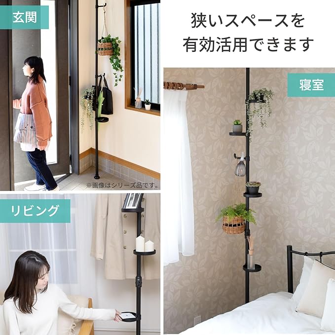 【場所をとらずに空間を活用】部屋のすみなど狭い場所にも上下に突っ張ってカンタンに設置が可能、玄関やリビングのわずかなすき間をプランターラックや小物の収納スペースとして活用できるスタンドです。