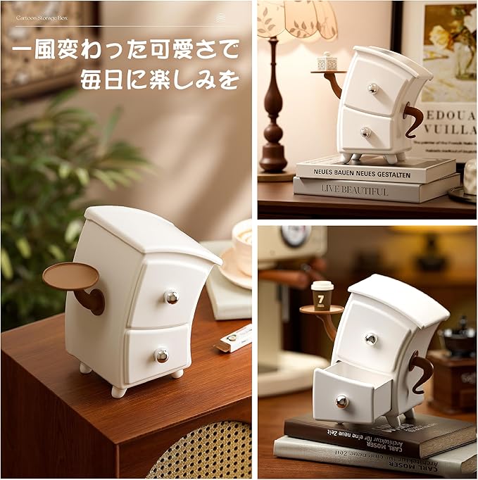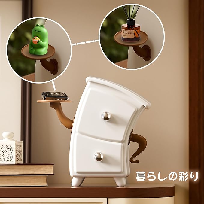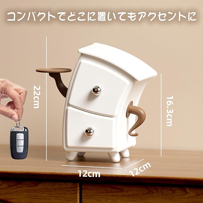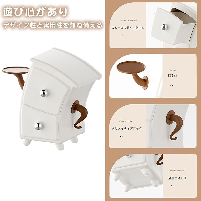 小物入れ 収納ボックス プラスチック トレー付き2段引き出し 鍵・アクセサリー整理 机の上収納 コンパクト デザイン収納 クリエイティブ 個性的