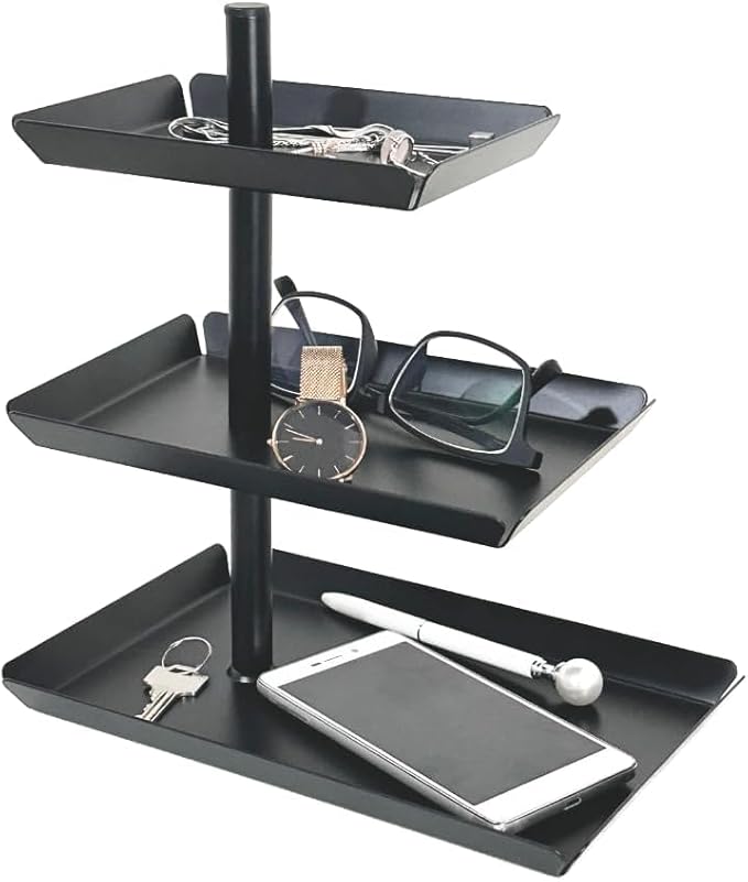 アクセサリートレー 3段 タワー 約W24.5XD15.5XH28cm 小物入れ ジュエリースタンド アクセサリー収納 (ブラック)