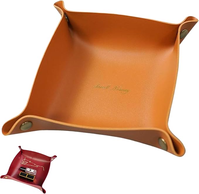 レザートレイ 20 20cm トレー おしゃれ 小物入れ 小物収納 卓上収納 アクセサリートレイ 大容量 取り出しやすく 一目瞭然(オレンジ)