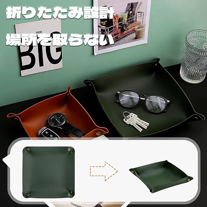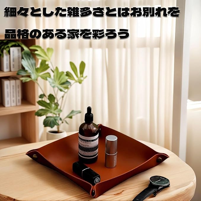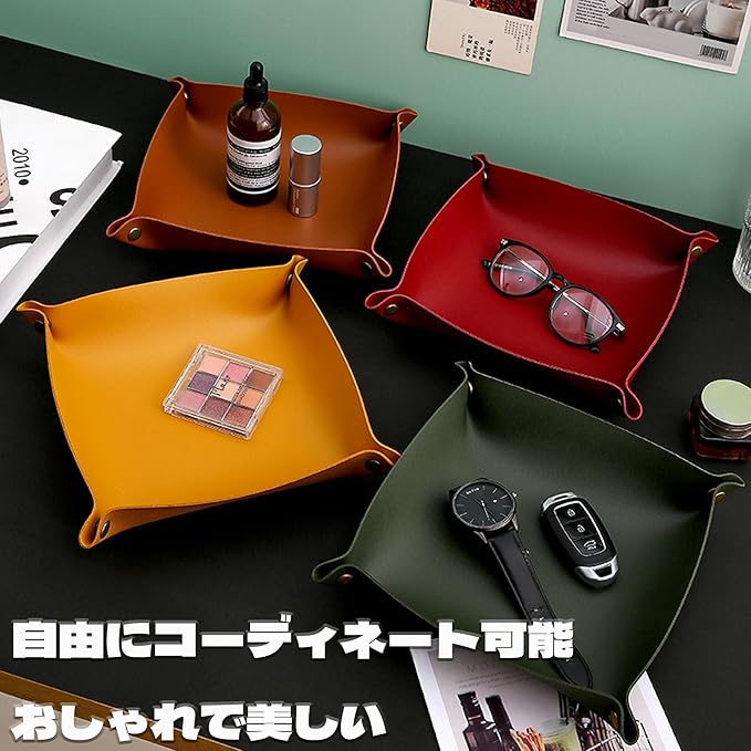 【高品質素材】小物トレーは高品質のPU素材を使用して作られており、お手入れが簡単で、手触りも良く、質感が抜群です。どこに置いても非常にスタイリッシュで使い勝手が良いです。雑多なものを整理し、格調高い空間を作り出すことができます。