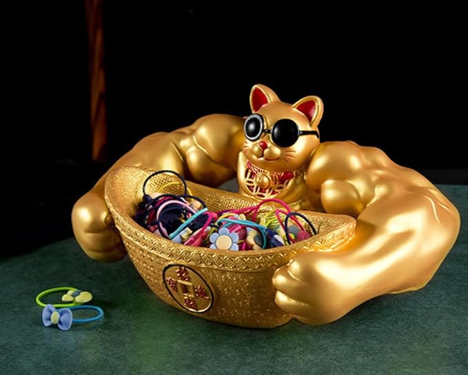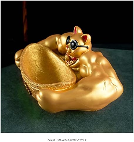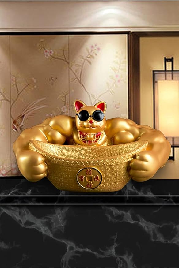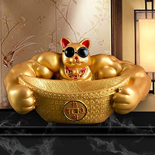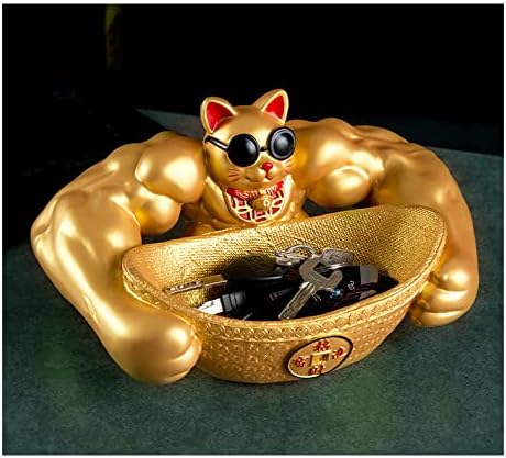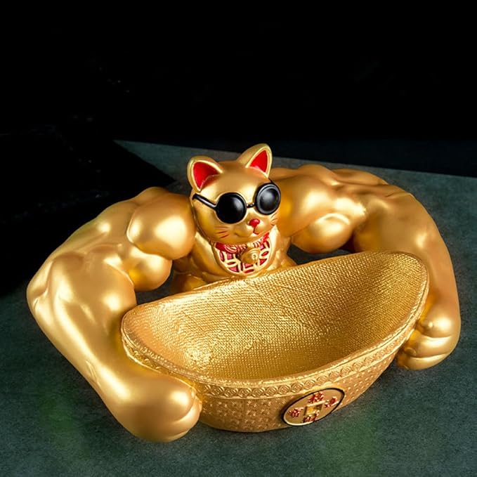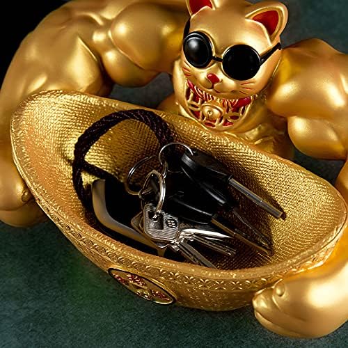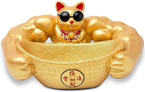 置物 招福 招き猫 開運 金運 祈願 筋肉 招き猫 鍵など小物収納 卓上置物 招財 面白い 誕生日プレゼント インテリア 雑貨 樹脂製 (ゴールド)